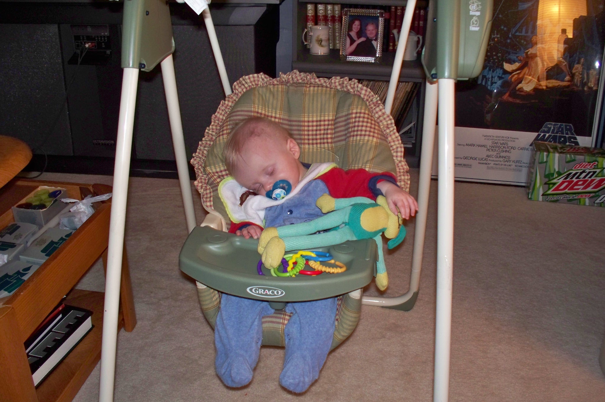 By this point, he was an expert at sleeping through the night, though he had absolutely no interest in napping on a schedule. Amelia and I developed a system whereby she would go to sleep early while I would bathe Tommy and put him to sleep upstairs. There, I would have a few late night hours to write or play video games before switching with Amelia in the guestroom downstairs. She would sleep upstairs and tend to him if he needed it, while I would sleep uninterrupted downstairs. We tried using monitors, including a really cool video monitor my mother got us, but the distance between the two rooms was too great.