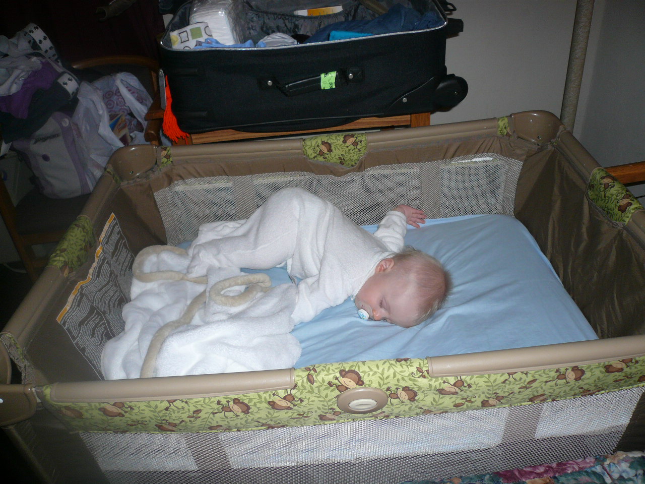Once in South Carolina, Tommy was of course thrilled to see his Grandma and Grandpa, but since we arrived so late in the day, the first order of business was getting to the hotel and going to sleep. Amelia and I were exhausted, but Tommy was not. So, hoping for the best, we put him in his play-pen and turned out the lights. Tommy's reaction was unexpected; he didn't go to sleep, but he didn't start screaming either. Instead, he started laughing. It wasn't just regular everyday laughing, either, it was the kind of laughter that follows being told the funniest joke you've ever heard. He eventually went to sleep, happy as can be, and we followed suit.