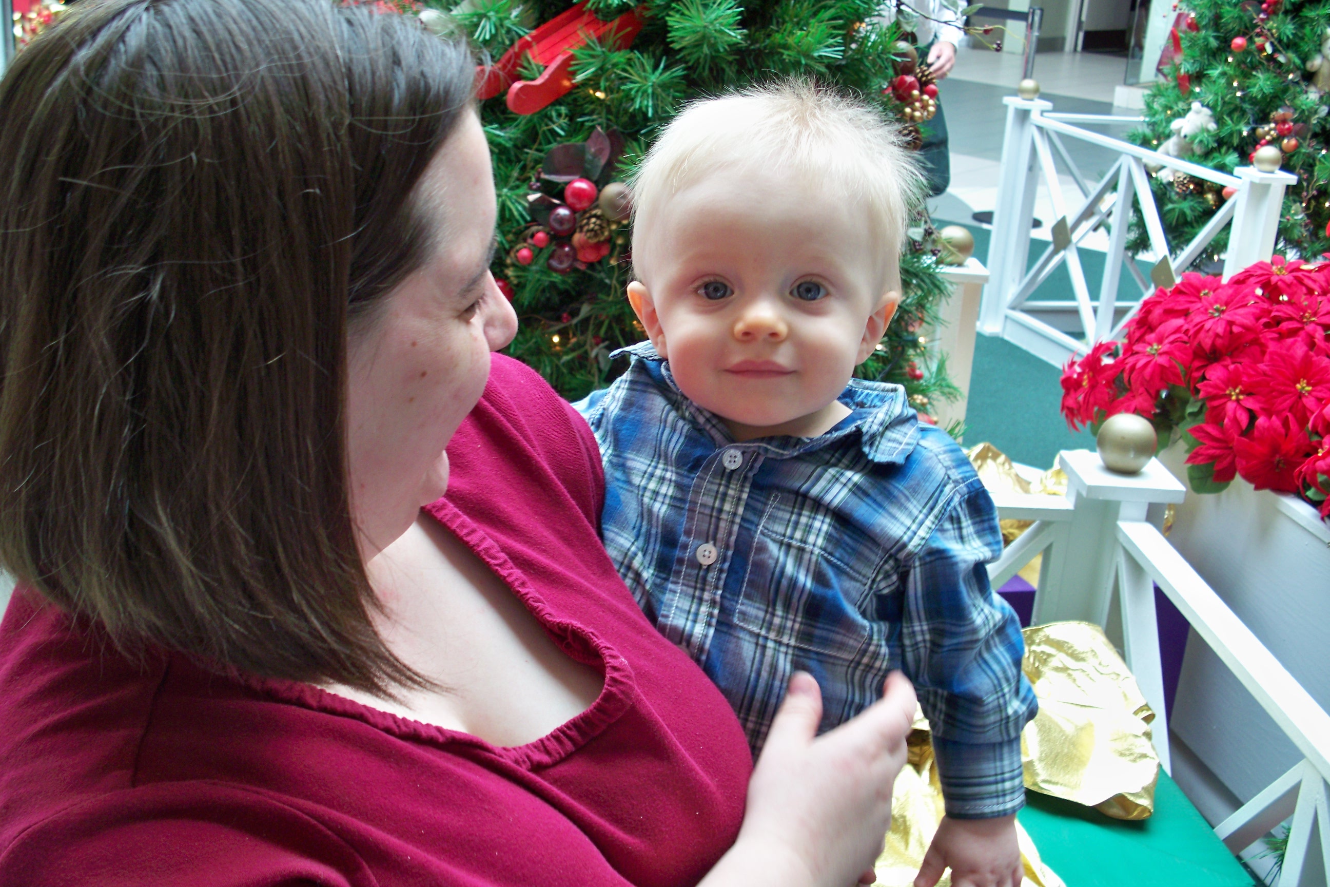 He also got to see Santa at the mall. The official mall camera was broken, but they let us take a few pictures of our own from the sidelines. As for Tommy, he didn't know what to make of it.