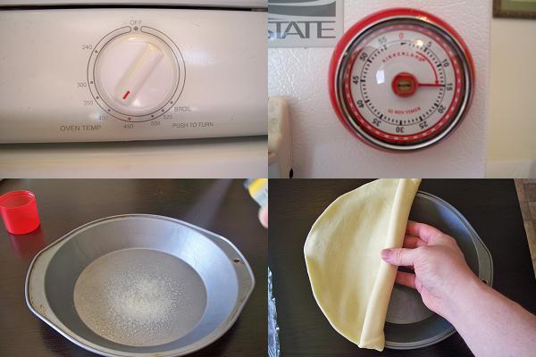 Preheat the oven to 400° and wait 15 minutes. Spray a 9-inch pie pan with cooking spray and carefully line it with one of the dough sheets.