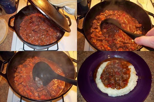 Skim the fat off the top, if desired, and stir. Remove the bay leaves, if you can find them, and then add plenty of salt and pepper to taste. Serve over mashed potatoes (or rice or egg noodles). Reach a temporary state of culinary nirvana.
